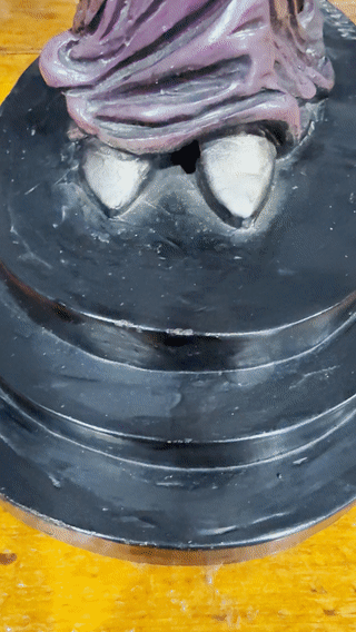 Some small dents/scratches on the base and it appears past touch-up has been performed on minor chips on one of the feathers, (please see images and video).