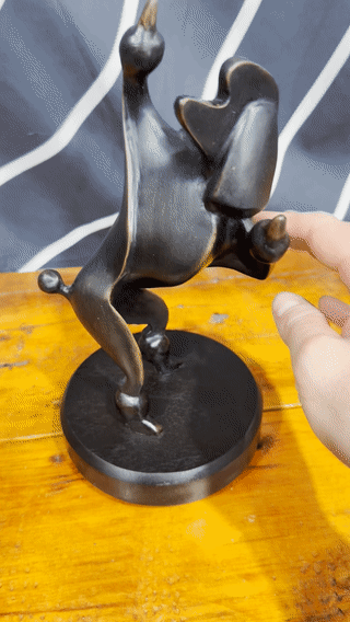 Bronze Sculpture on rotating wood base. 10"h x 5.25"w x 5.25"d